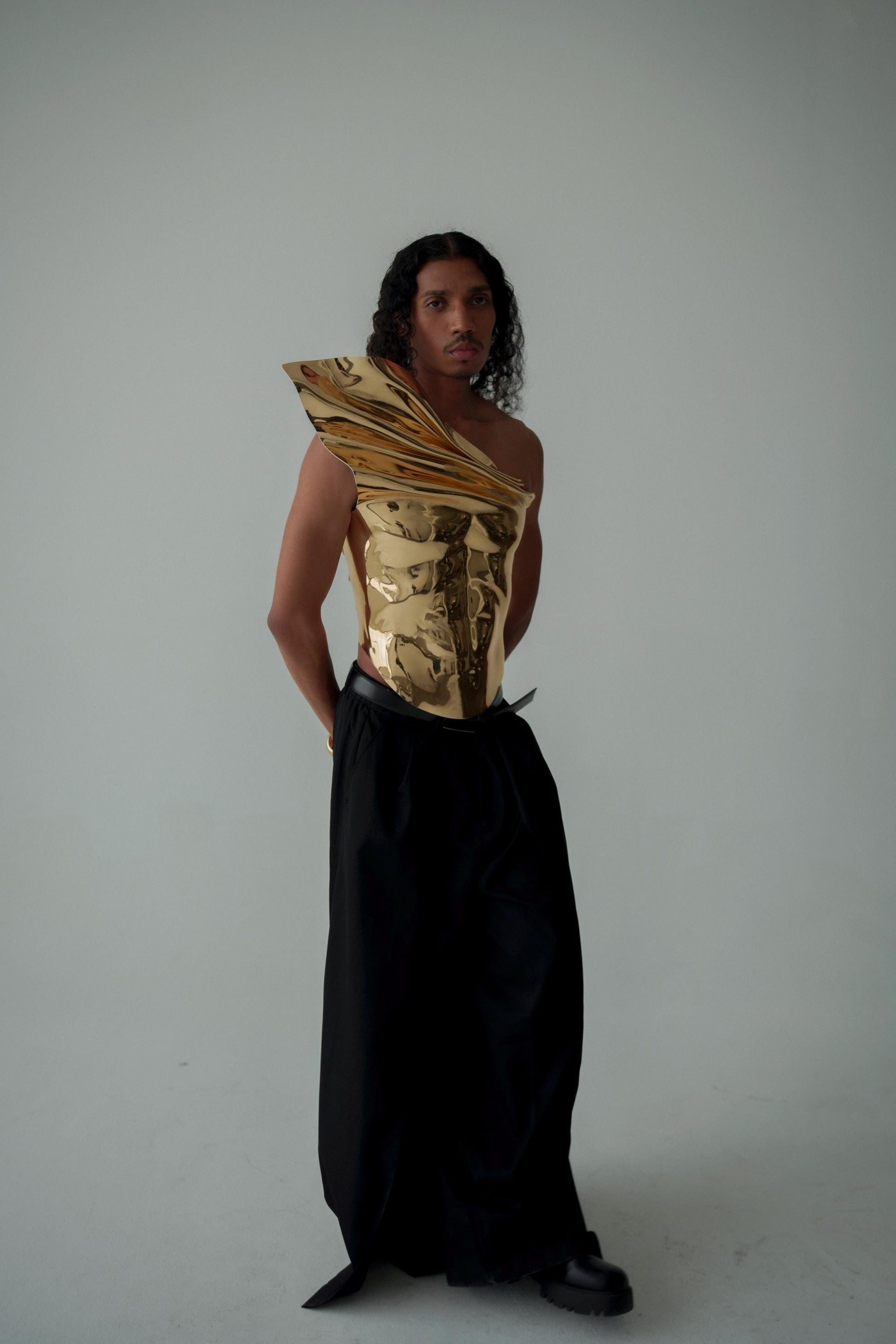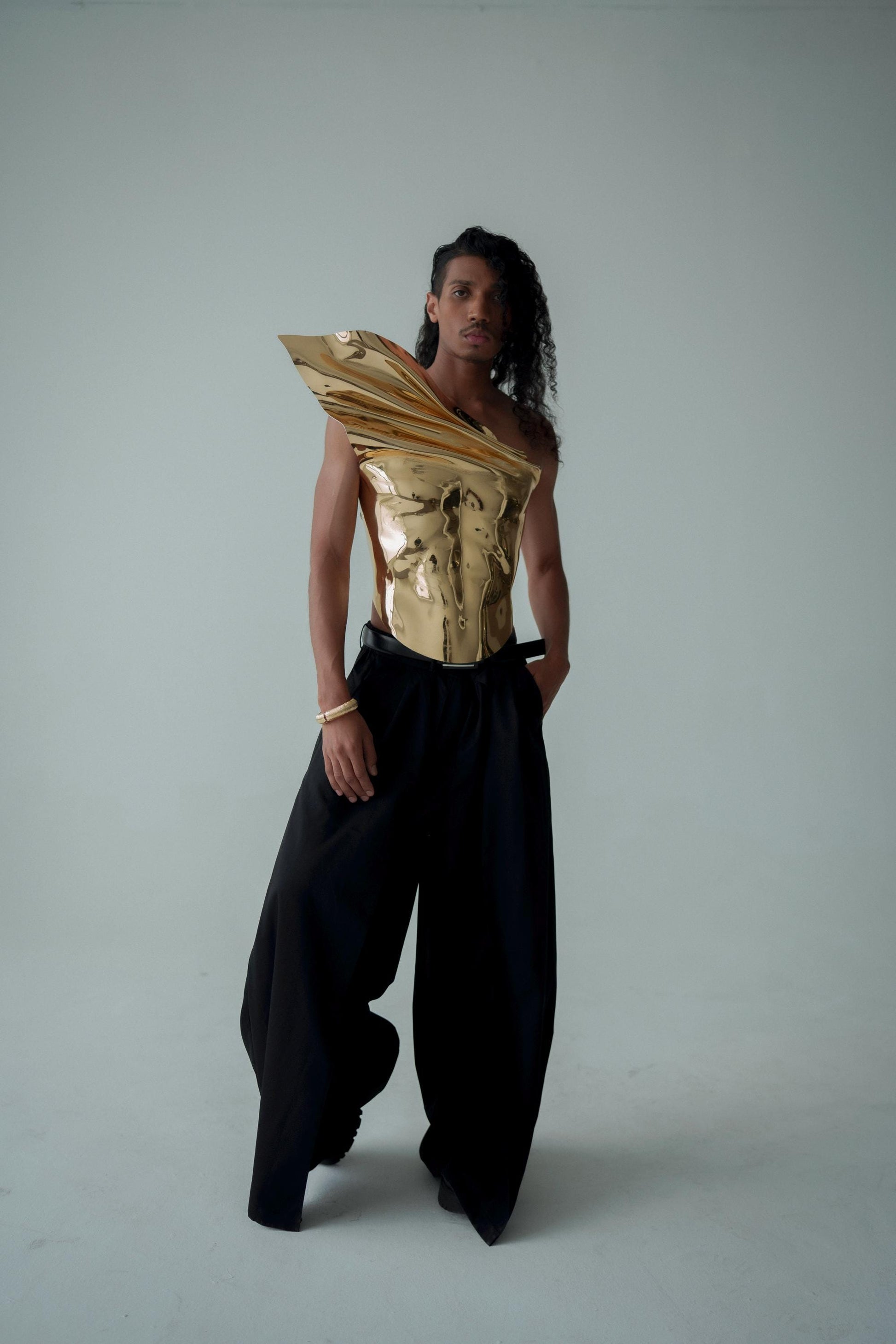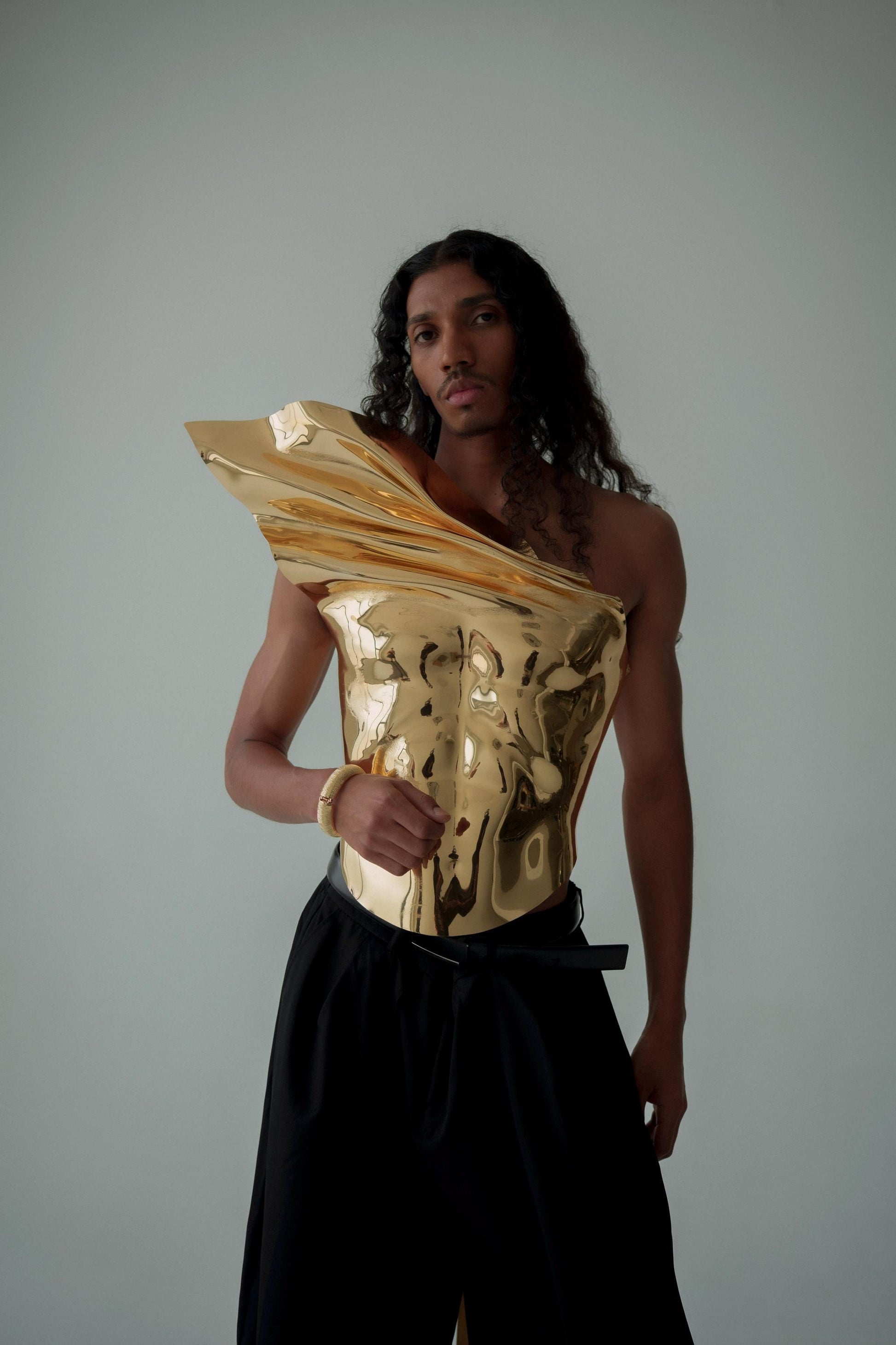 Gold Armor Corset For Men — Sculptural Chest Plate Statement Piece