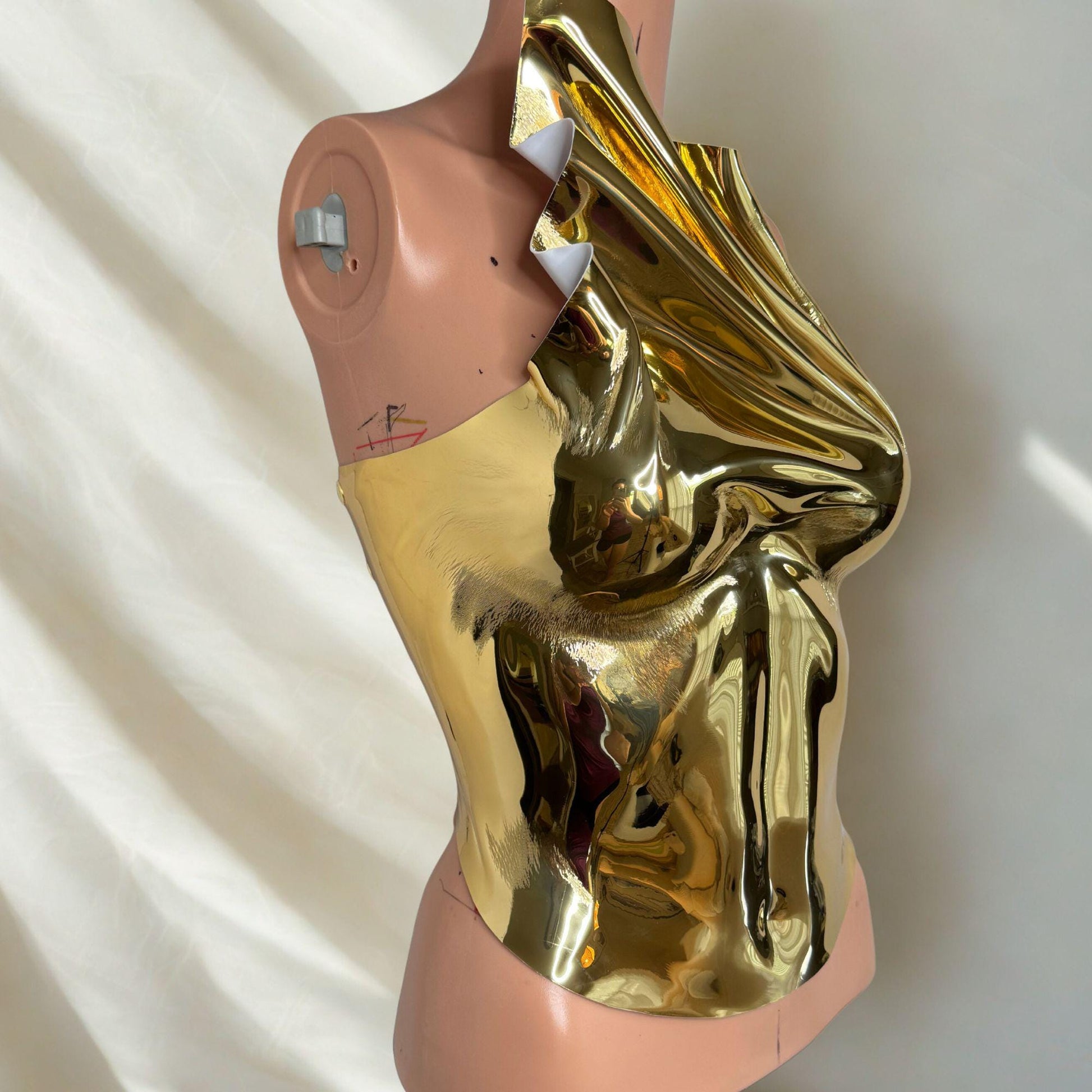 Gold Chrome Mirror Corset Top: Futuristic Rave Outfit