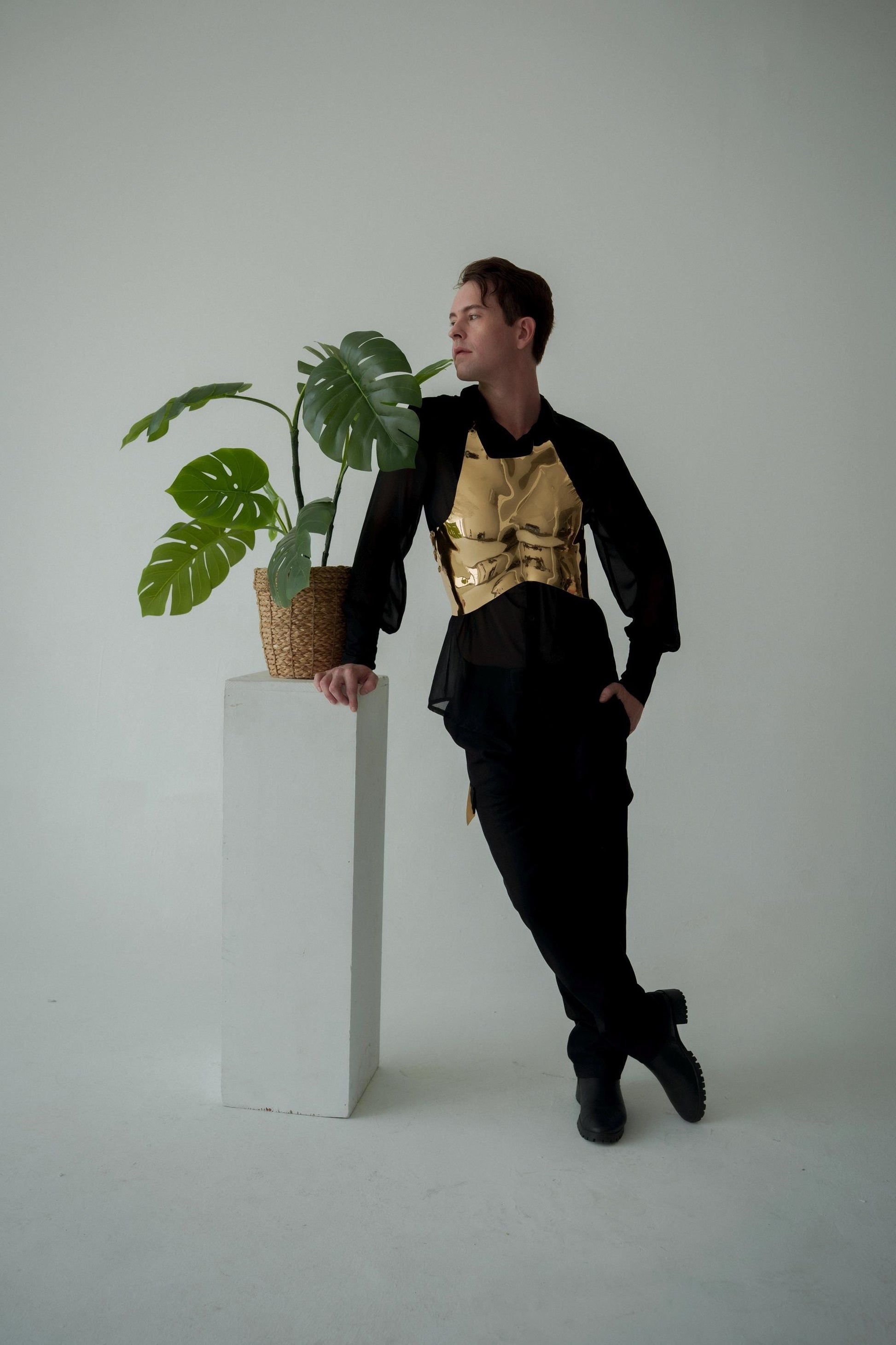 Discover the Menβs Gold Corset Breastplate, a bold and unique design perfect for modern fashion enthusiasts. This avant-garde crop top is ideal for festivals, stage performances, or statement-making outfits, blending style and functionality seamlessly.