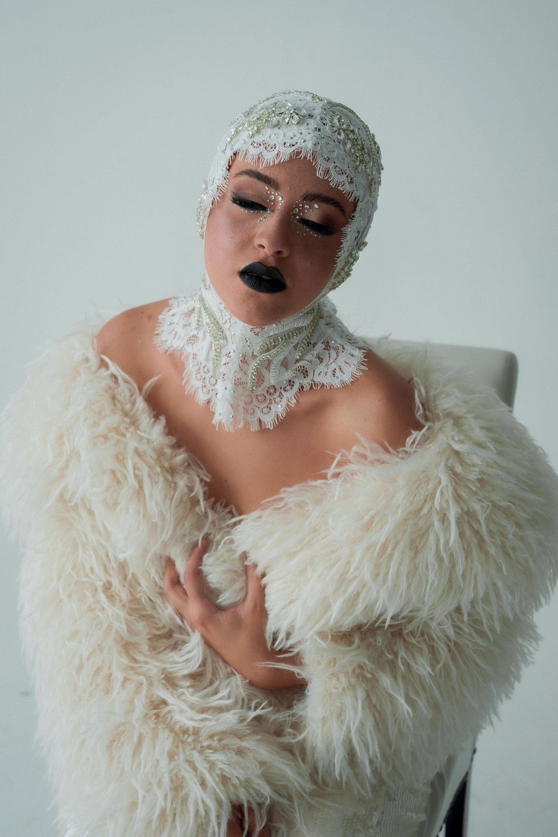 This unisex lace and pearl beaded headpiece is a handcrafted statement accessory designed for editorial shoots, drag fashion, stagewear, or avant-garde styling. With ornate embellishments, rhinestones, and vintage lace textures, itβs the perfect piece to elevate any runway, costume, or creative fashion moment.