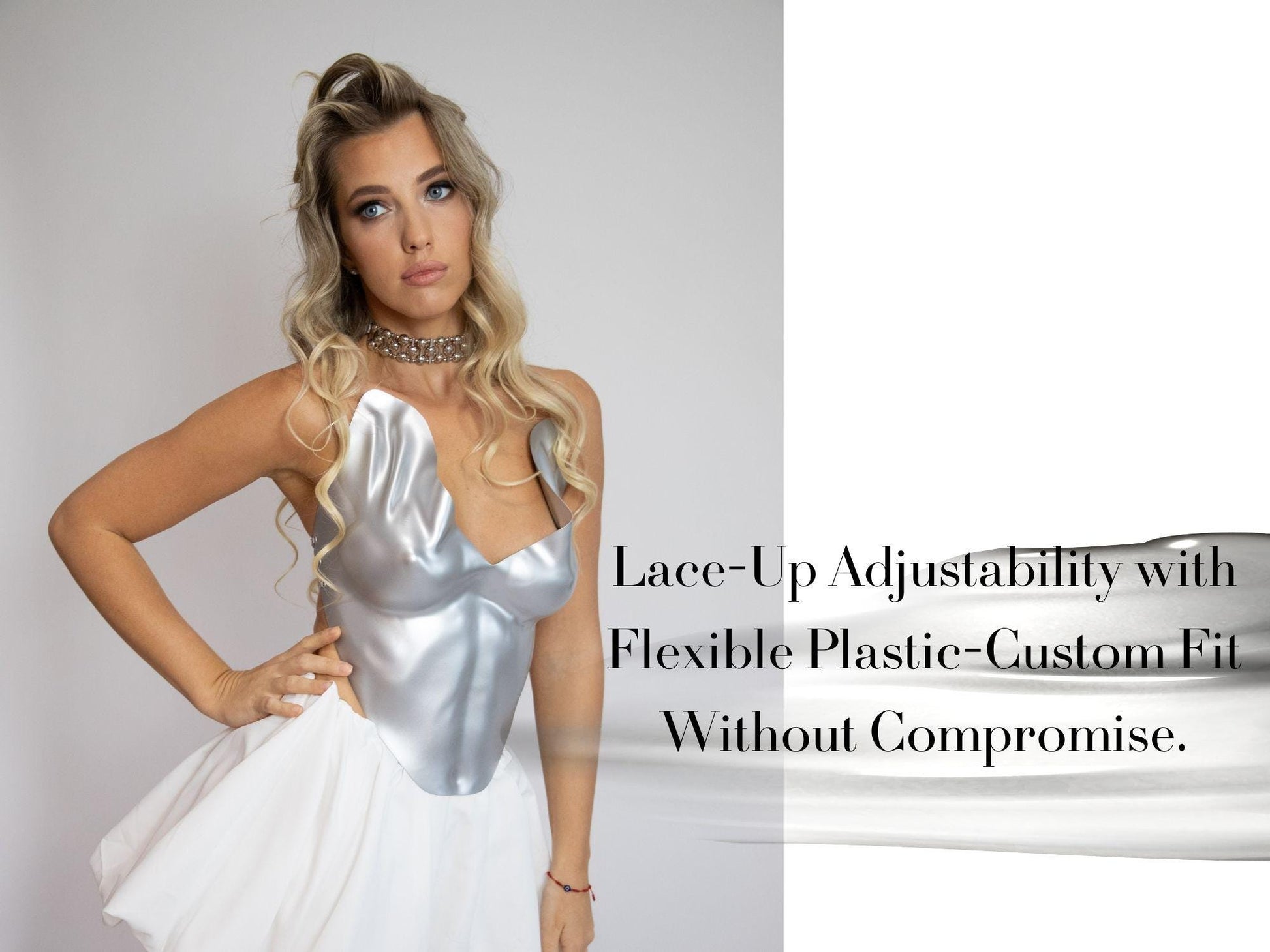 Our corsets are crafted from durable plastic with a thickness of 1 mm (1/8 inch), ensuring they remain flexible. The lace-up back provides the ability to tighten or loosen the corset, making it adaptable to your body shape.