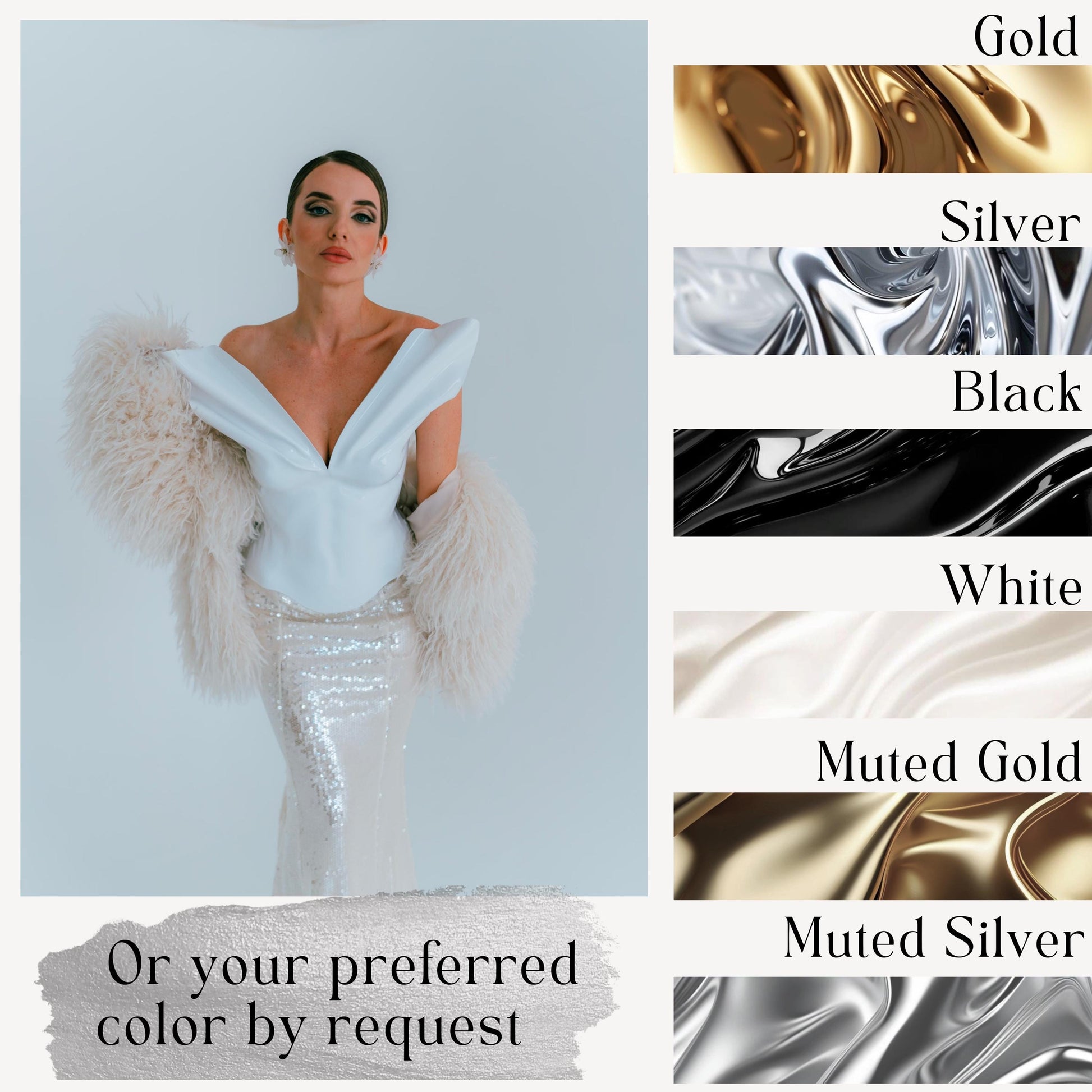 Ā š¤ššš ššššš šššš šššš 1. White corset with flowers https://www.etsy.com/listing/1731526654/high-quality-bridal-corset-with-custom 2. Another bridal look https://www.etsy.com/listing/1729017910/asymmetrical-white-bustier-one-of-a-kind 3. Silver look you may like https://www.etsy.com/listing/1768209930/molded-silver-corset-rave-outfit
